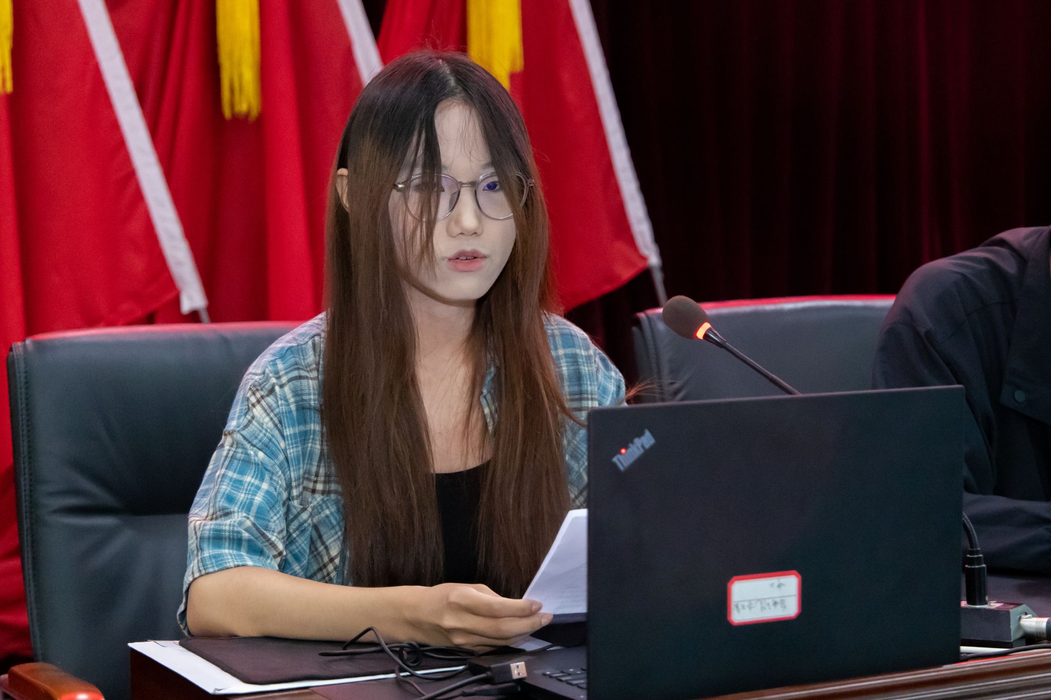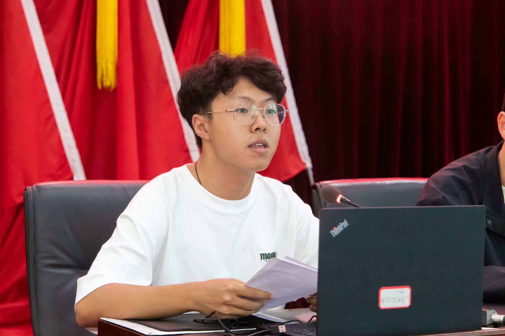 高年级员工代表、电信232班陈姝文分享了自己的成长经历;本科新生代表通信252班高思洋、硕士研究生新生代表熊博成先后发言,表示将秉承“博学弘德、自强不息”的校训,让青春在强国建设、民族复兴的新赛道上跑出加速度。