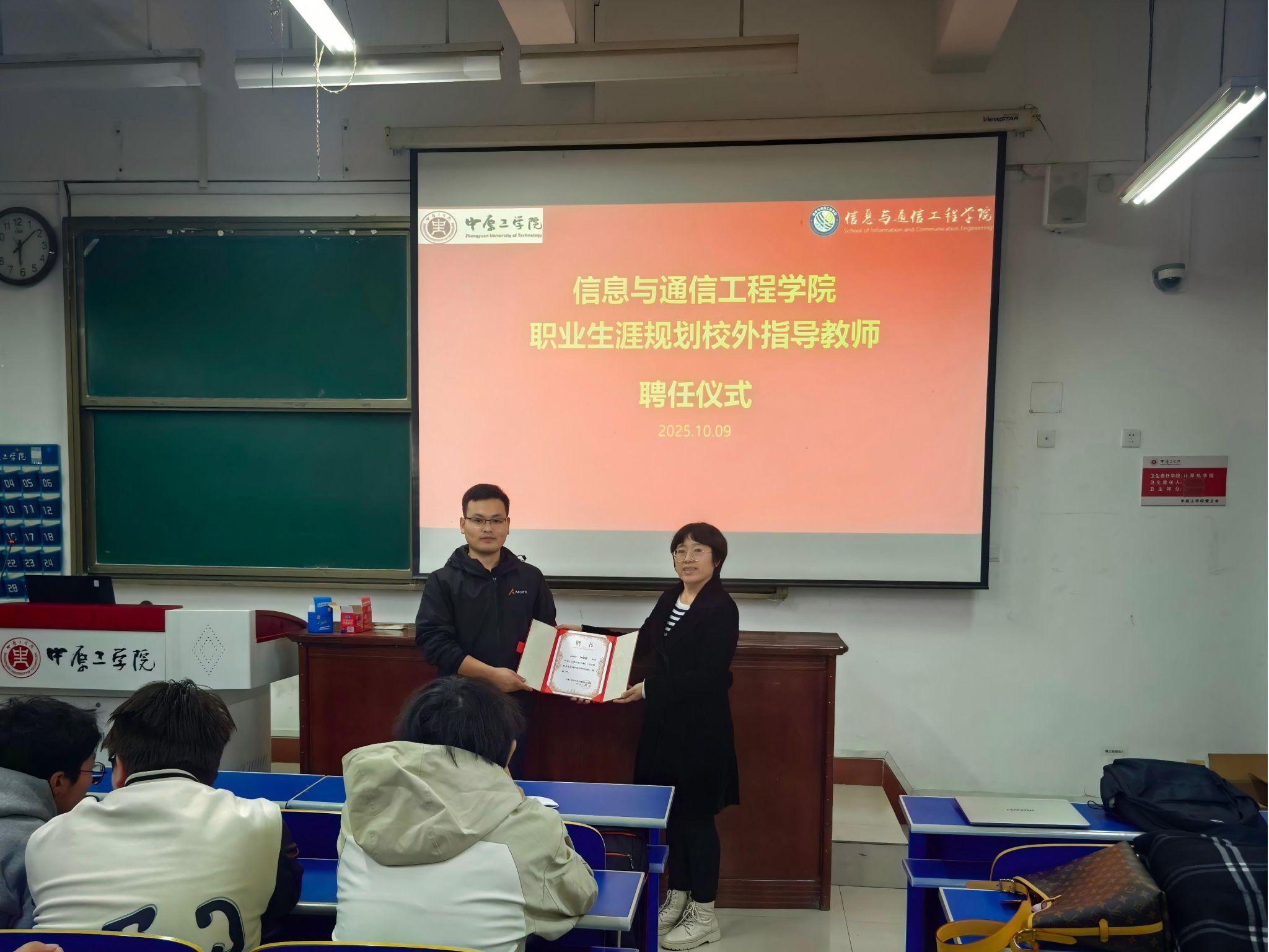 活动伊始,信通公司副经理张爱华为孙星星颁发 “职业生涯规划校外导师” 聘书。孙星星深耕通信技术与行业人才培养领域多年,具备丰富的实践经验与前沿视野。此次聘任旨在搭建校企协同育人桥梁,为员工职业发展提供更贴近行业需求的指导。