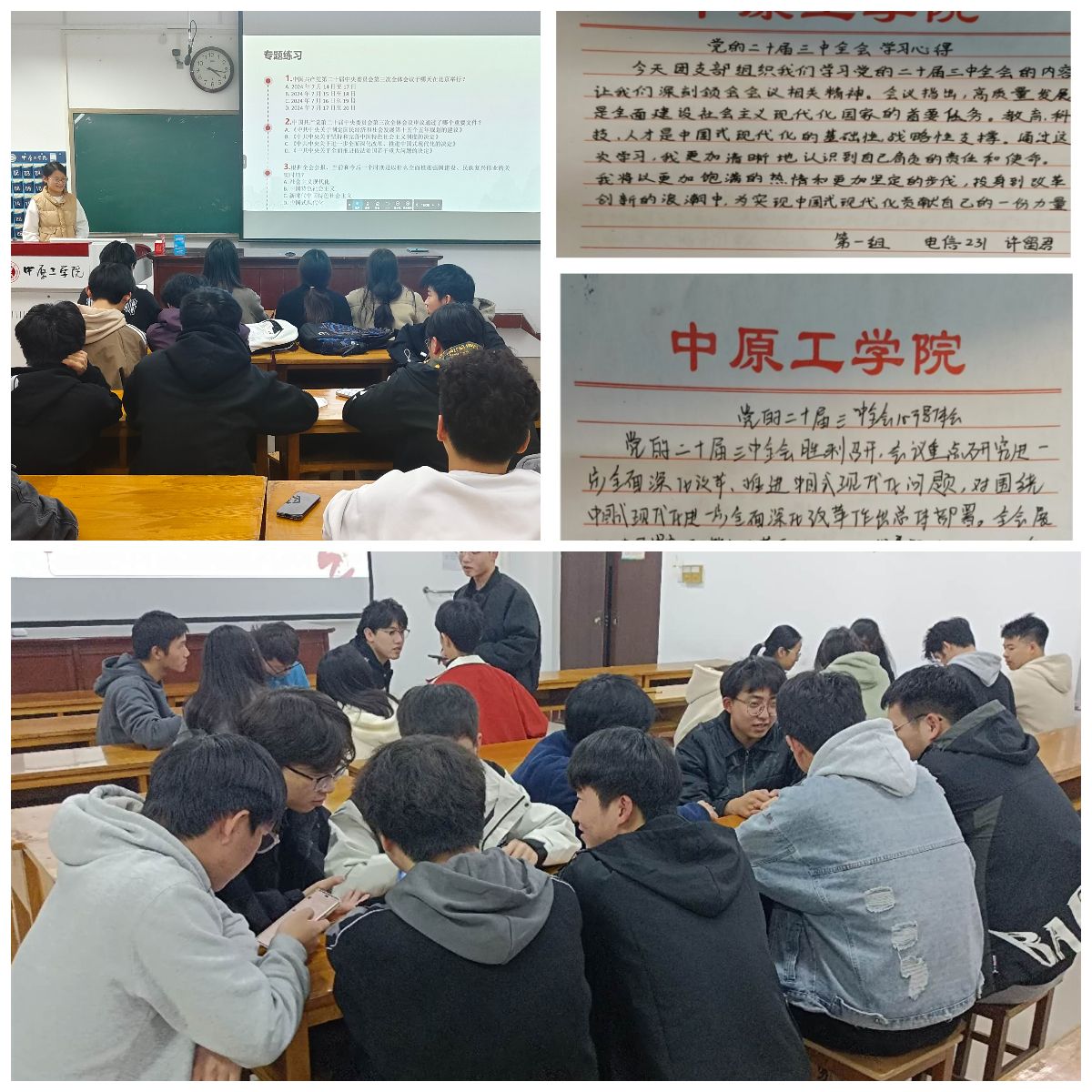 为深入学习和广泛宣传党的二十届三中全会精神,进一步提升我院学生的思想政治素养,2024年11月1日至18日,VSport体育官网组织各班级开展“争做新时代信通好青年”主题理论学习活动。