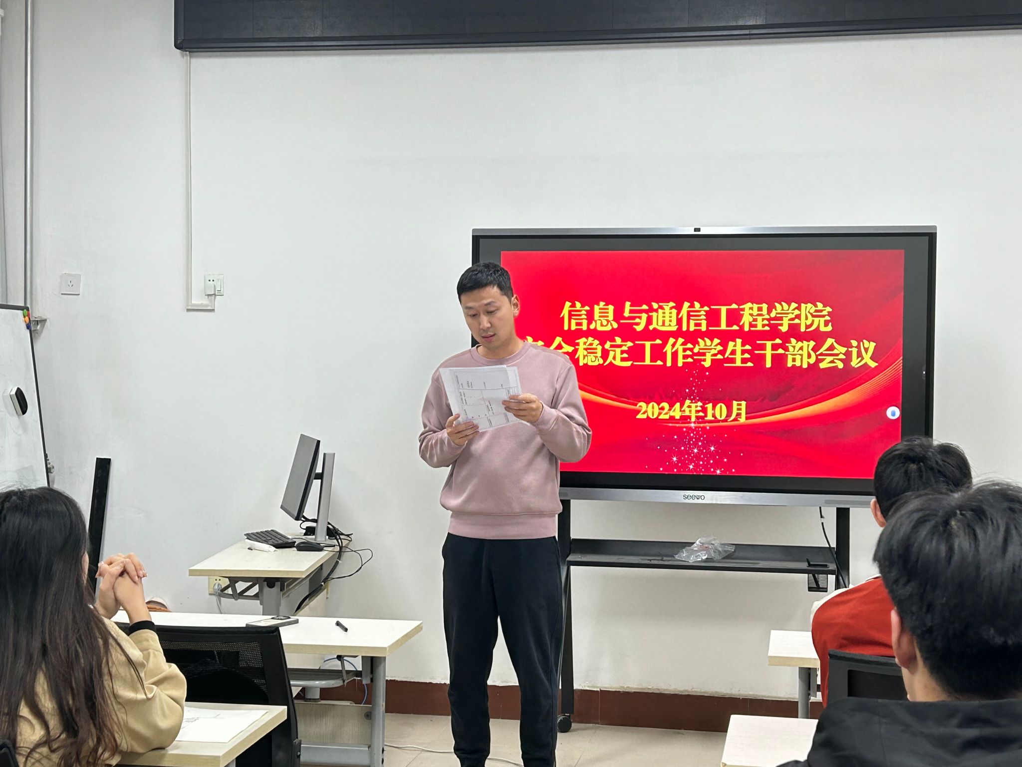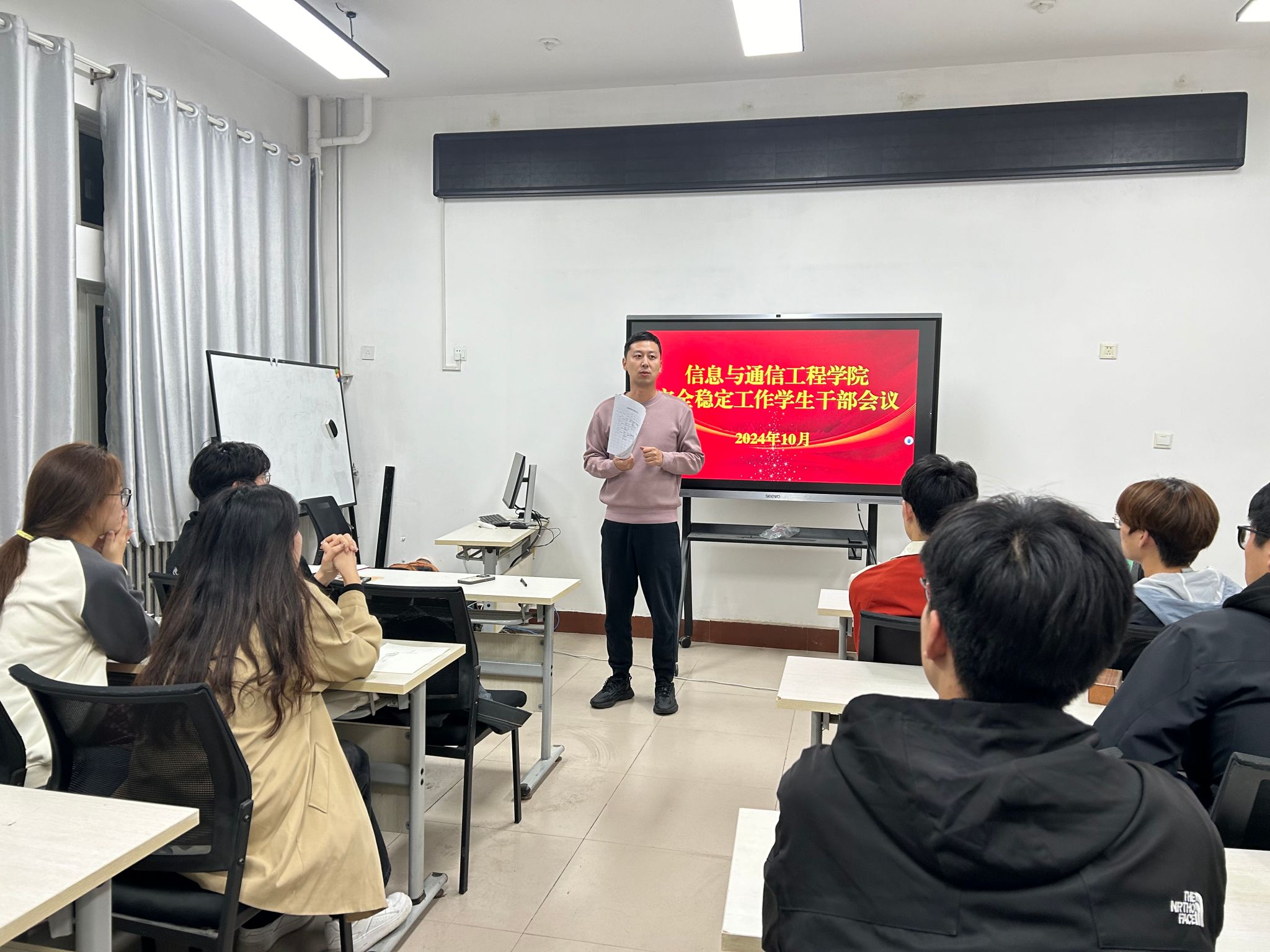 10月30日,公司在龙湖校区10号楼311教室召开安全稳定工作员工干部会议,全体专兼职辅导员、各班级班长、团支书、生活心理委员参加会议。