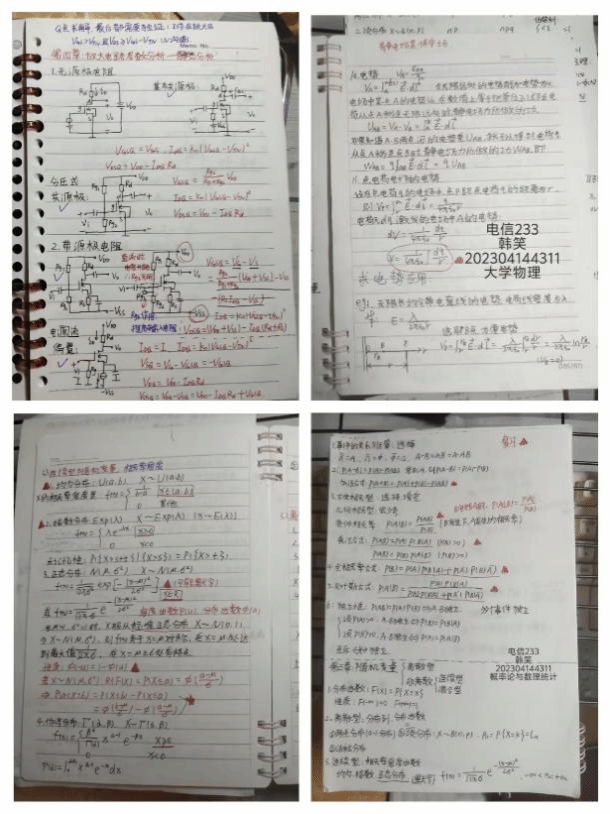 本次大赛提交的笔记作品内容涵盖《数字电子技术》《概率论与数理统计》《模拟电子技术》等核心课程。评审团最终从众多作品中评选出一等奖2名、二等奖3名、三等奖4名,其中:一等奖:电信233班韩笑、电信232班陈姝文;二等奖:电信234班王雨晴、电信231班王梦雨、通信241班王琼萌;三等奖:电信232班张嘉洛、通信243班王显要、电信222班廉旭阳、通信241班闫兰鑫。