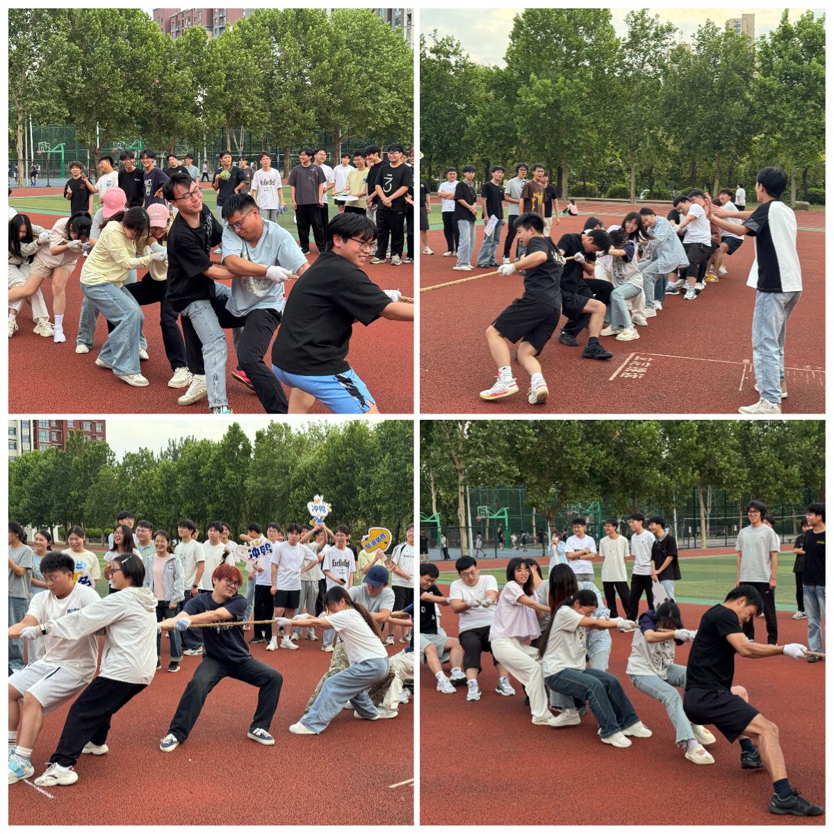 为缓解期末备考压力、增强班级凝聚力,我院于6月4日,在龙湖校区南苑田径场举办拔河比赛,以“绳”为媒,助力员工以积极心态投入复习。
